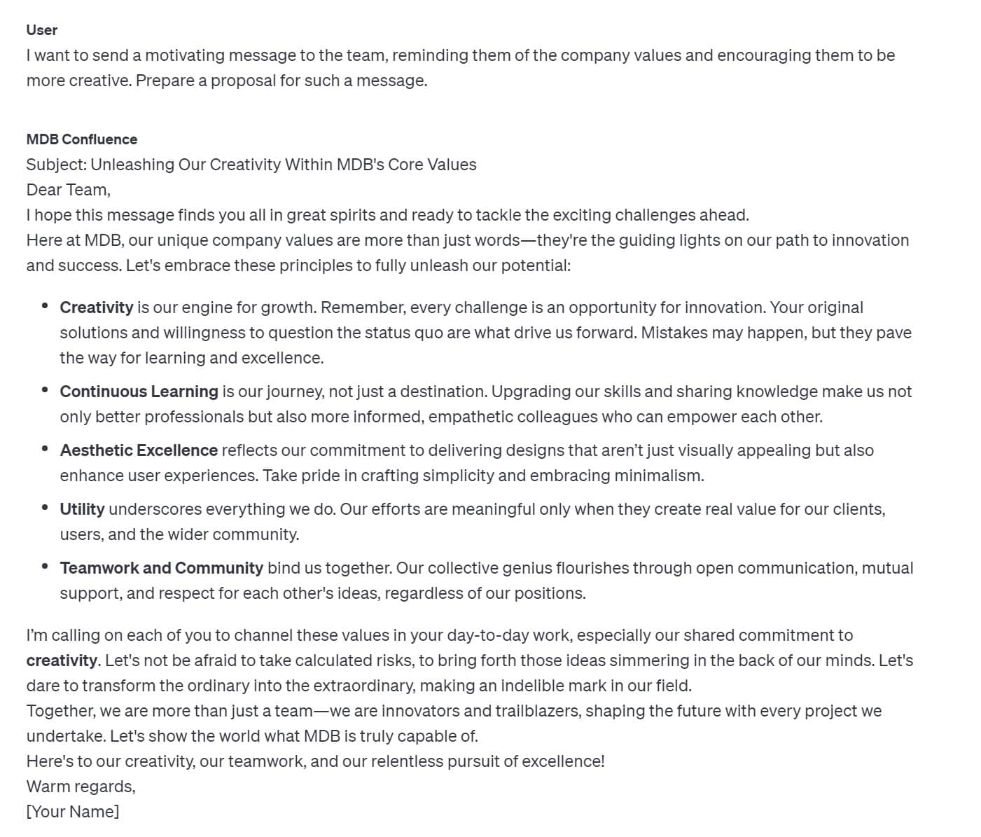 Now all I have to do is launch our Internal Chatbot and in a few seconds I get exactly what I need: