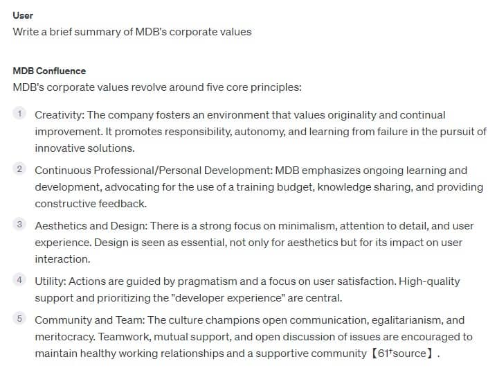 The most important reason is the fact that publicly available chatbots, such as chatGPT, do not have access to the latest knowledge (e.g. chatGPT does not know anything about the latest version of MDB, which was released on December 4, 2023, because openAI's knowledge at this point ends in April 2023).